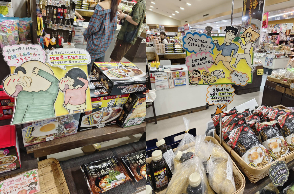 大家知道蠟筆小新的爸爸的出生地是在秋田嗎?就是卡通內常常提到的秋田的爺爺だゾ~能在這邊看到很多關於小心的伴手禮喔!喜歡蠟筆小新的人不要錯過除此之外也有很多各式各樣的伴手禮,以及秋田犬的娃娃,來到橫手想挑禮物來這裡絕對沒有錯!