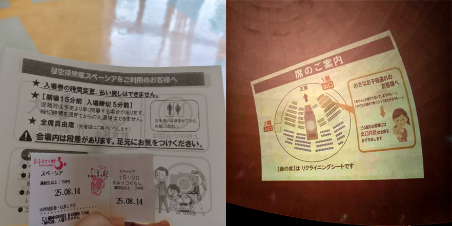 在這裡你可以體驗星象館,我這次剛好遇到與角落生物合作的活動,與角落生物們一起看星星以及學習星星的知識,除了學知識也能舒適的休息!椅子可以躺到大約160度,冷氣也非常舒適,有250個座位,完全不用擔心人擠人,30分鐘就有一個場次,非常彈性!