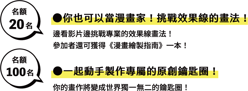 本次除了介紹美術館收藏原畫的努力及魅力外,也將展出珍貴原畫的復刻版、海報、漫畫等。同時也將舉辦鑰匙圈製作及效果線教學的小工作營。歡迎大家來共襄盛舉。